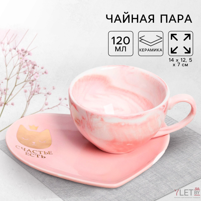 Подарочный набор керамический «Счастье есть»: кружка 120 мл, блюдце, цвет розовый