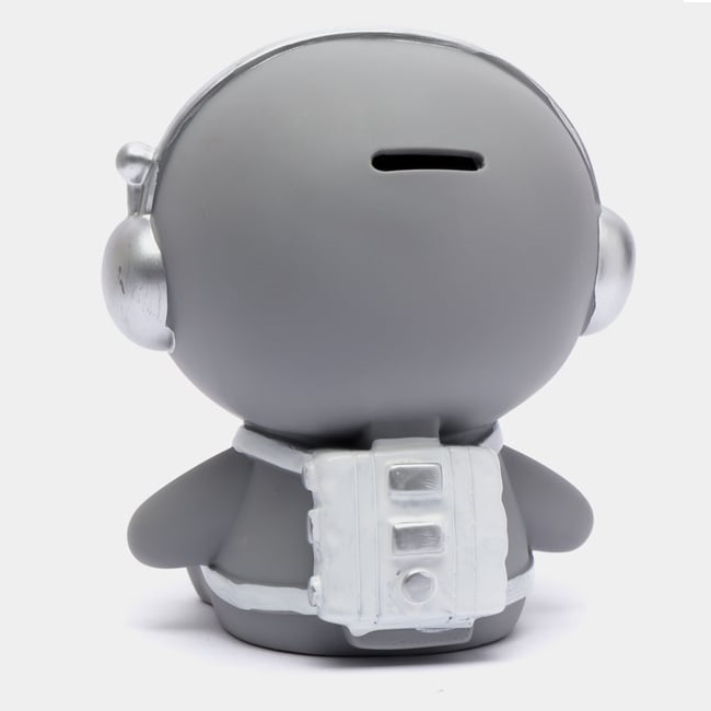 Эту игрушку с функцией ночника можно использовать еще одним способом: как копилку. В голове у большого космонавта есть широкая щель-монетоприемник. Правда, тут как с классической свиньей-копилкой: в конце придется разбить корпус, вернее, очень аккуратно вырезать батарейный блок, потому что отсека для выемки накоплений тут не предусмотрено. Впрочем, можно попробовать вытрясти монетки через всю ту же прорезь для них. Но скорее, это действительно запас "на черный день".
