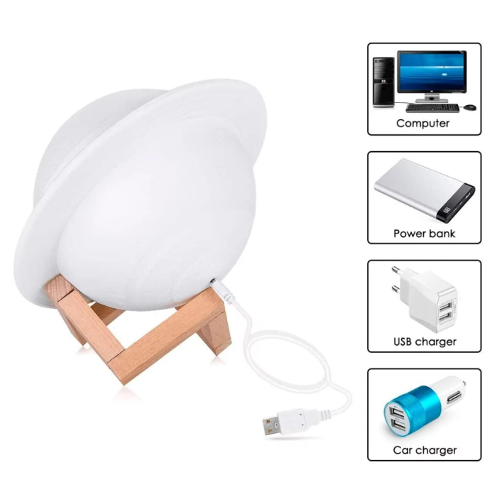 Стильныйночник "Сатурн" создает космическую атмосферу вокруг себя. Мягкий свет равномерно и плавно рассеивается по комнате, дает ощущение уюта и тепла. Светильник-ночник — прекрасный подарок, подходит как для детей, так и для взрослых, желающих иметь в комнате свою собственную галактическую обстановку, а также поможет вашему ребенку уснуть и спать спокойно до самого утра.