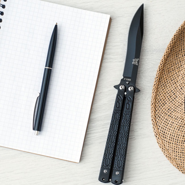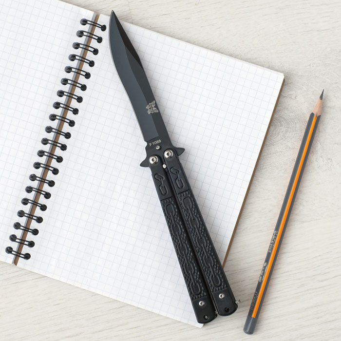 Нож складной бабочка не является холодным оружием. Прибор имеет простую конструкцию и быстро открывается одной рукой. Это даёт ему преимущества в экстремальных условиях. В разложенном виде «бабочка» надёжно фиксируется. В закрытом состоянии остриё ножа полностью скрывают рукоятки, поэтому ему не нужен чехол. Благодаря симметричности «бабочки», с ним удобно работать как правой, так и левой рукой.