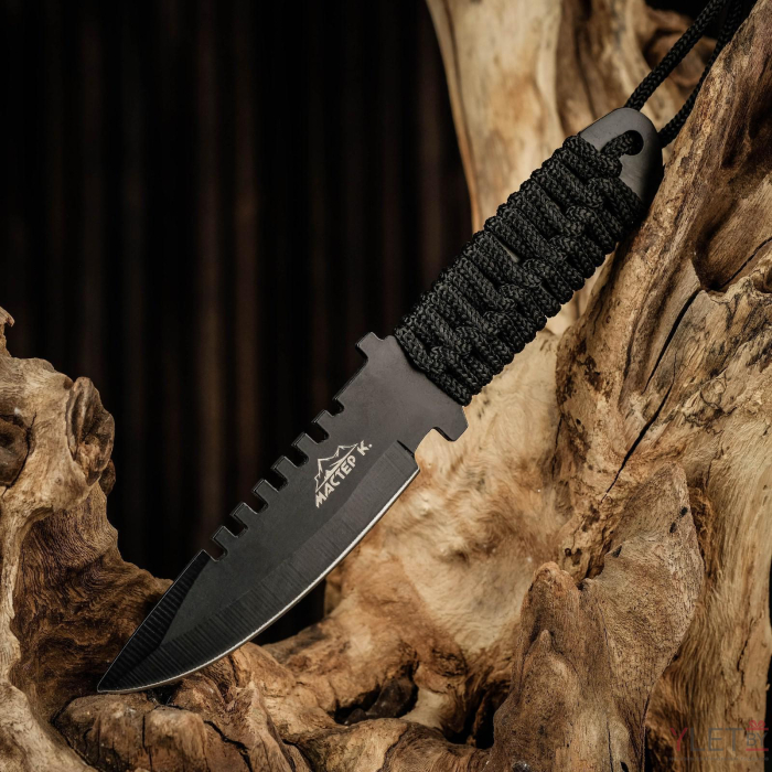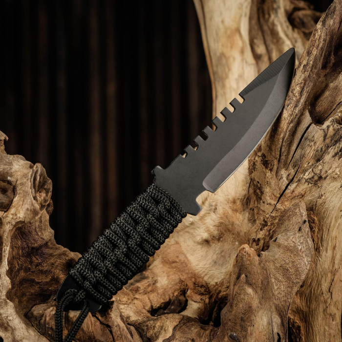 - Дизайн: Черный цвет ножа придает ему агрессивный и стильный вид, идеально подходящий для активного отдыха и тренировки метательных навыков.