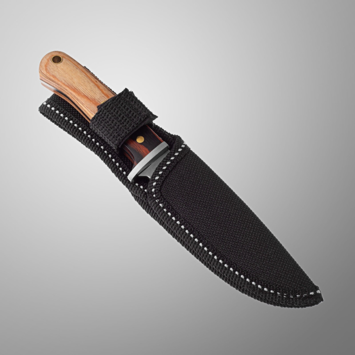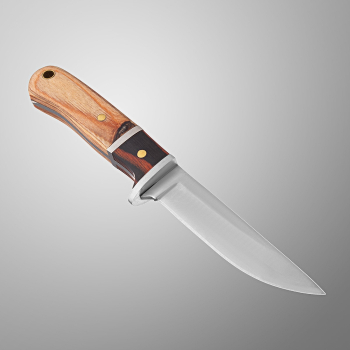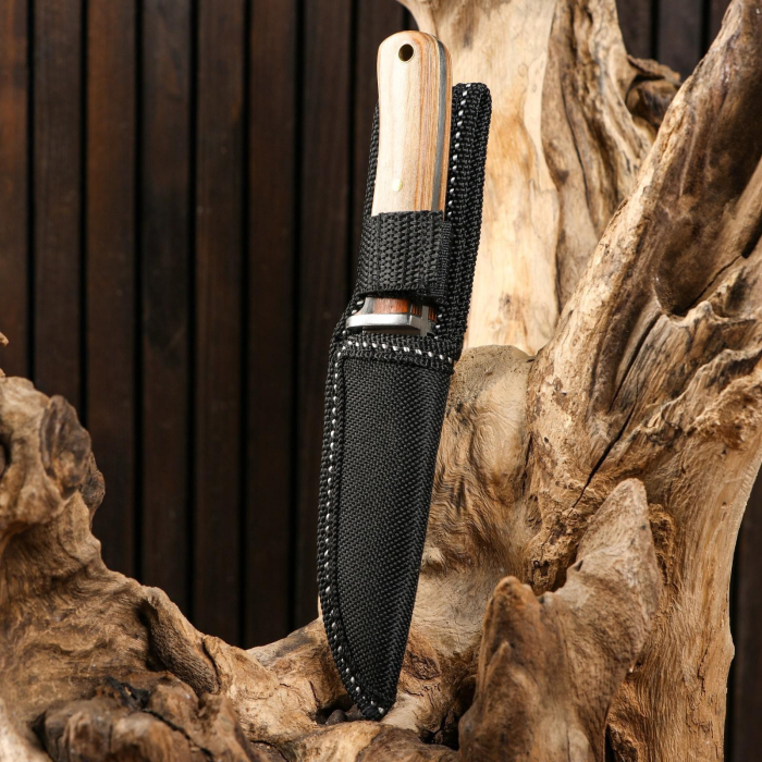 Клинок, изготовленный из стали 3CR13, отличается хорошими антикоррозийными свойствами и высокой прочностью. Твёрдость лезвия 53 HRC гарантирует достаточно острое и долговечное лезвие, способное справиться с любыми задачами — от разделки дичи до выполнения мелких хозяйственных работ на природе.