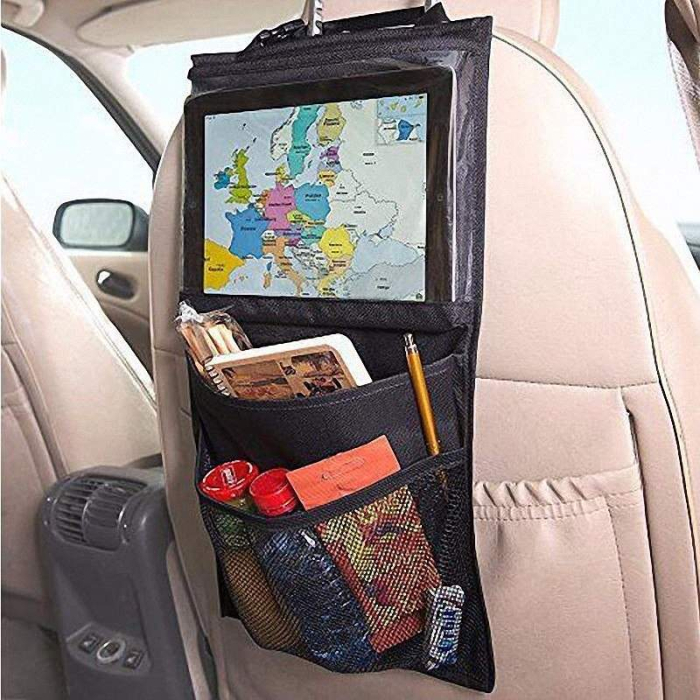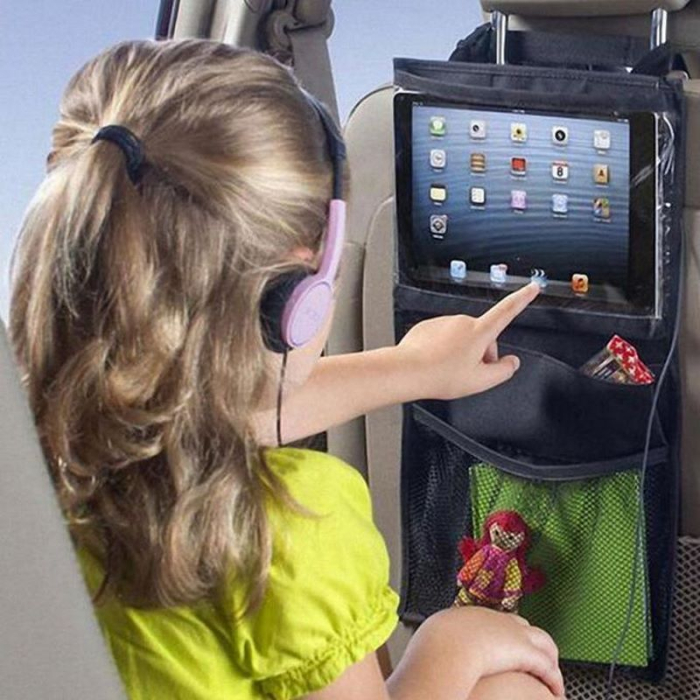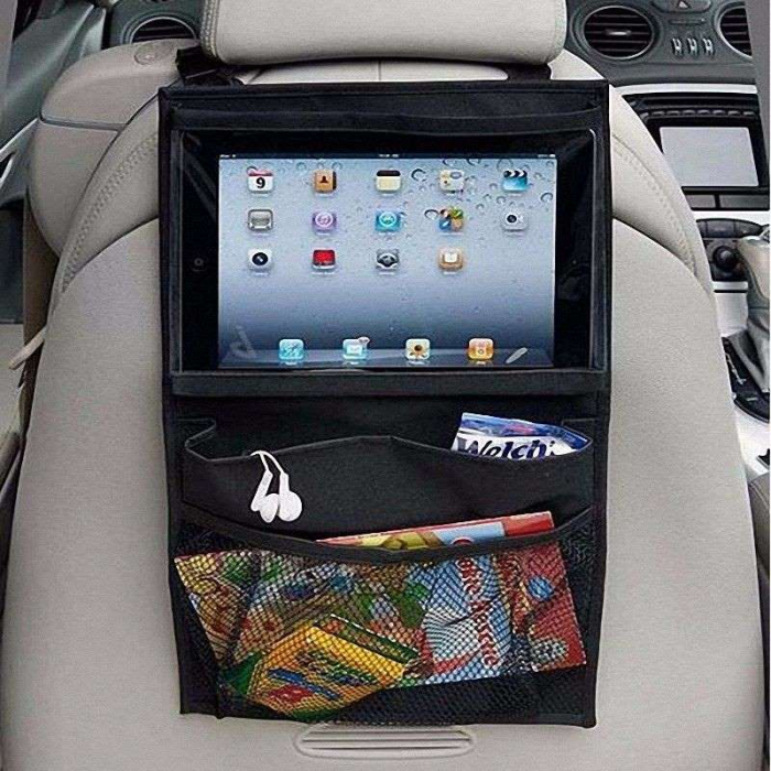 Органайзер предназначен для хранения предметов первой необходимости с легким доступом к ним, и незаменим для мобильных медиа-развлечений. Он легко крепится ремнями на подголовник переднего сиденья автомобиля с возможностью регулирования высоты крепления. Защитный карман для планшета позволяет получить доступ к сенсорному экрану.