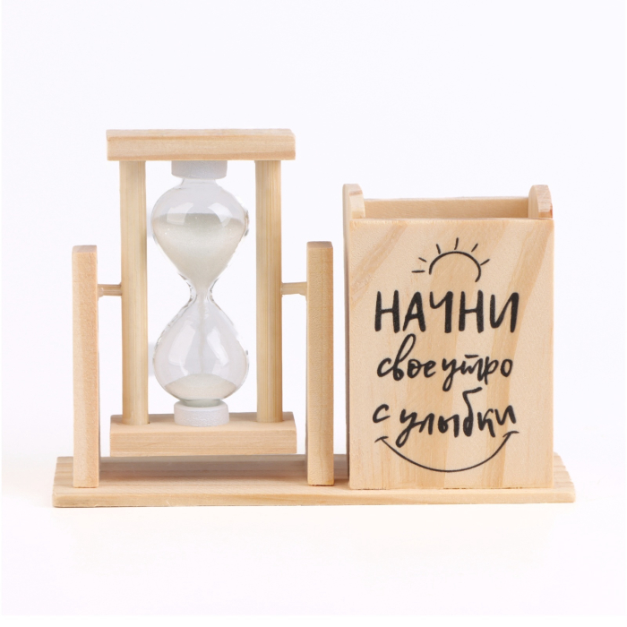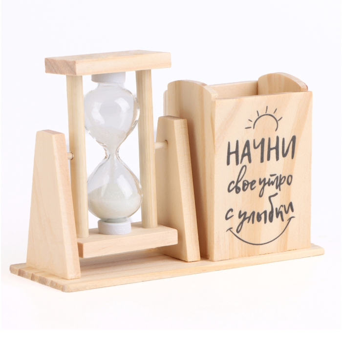 Песочные часы — органайзер "Начни своё утро с улыбки" – это стильный и практичный аксессуар, который станет прекрасным дополнением любого интерьера, будь то дом или офис. Изготовленные из стекла, дерева и песка, они сочетают в себе эстетику и функциональность.