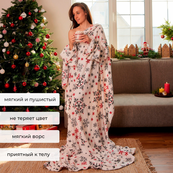 - 1. Удобство и функциональность: Плед с рукавами позволяет вам сохранять тепло, оставаясь при этом свободными в движениях. Идеально подходит для чтения книг, просмотра фильмов или просто отдыха на диване — теперь вы можете наслаждаться любимыми занятиями, не кутаясь в традиционный плед!