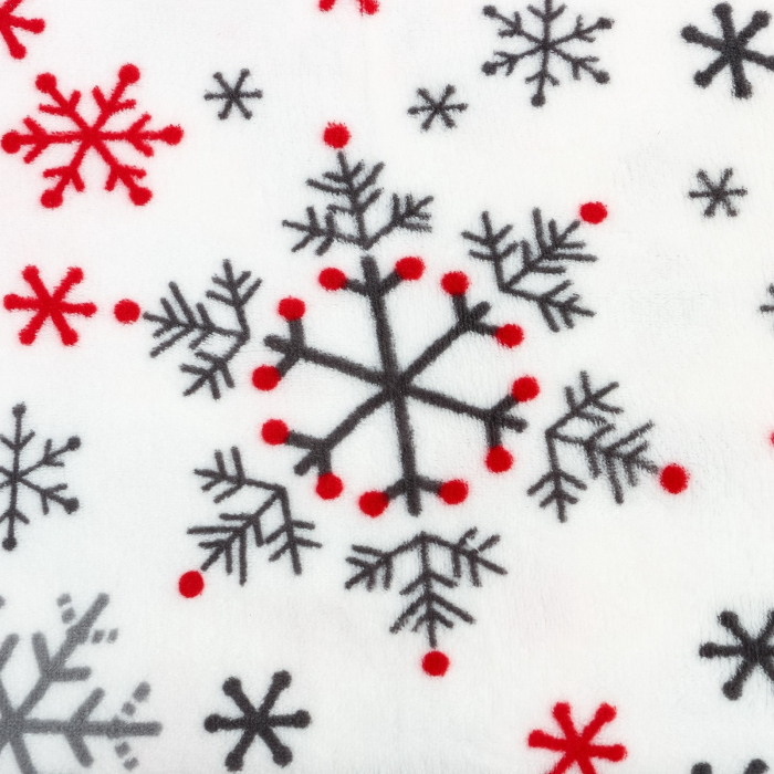 - 3. Эстетичный дизайн: Красивый принт "Снежинки" добавляет уникальности и стиля вашему интерьеру. Плед станет не только практичным элементом, но и ярким акцентом в любом помещении, создавая атмосферу уюта и праздника.