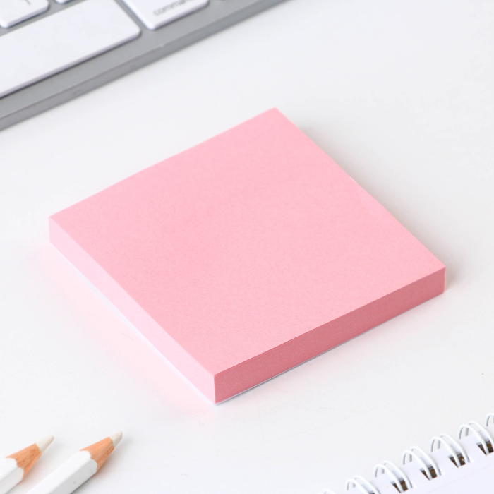 - Блок с липким слоем: создает удобство в планировании и организации. Яркие листочки можно использовать для записей, напоминаний или пометок, которые легко прикрепляются к любому месту, что позволяет не потерять важные мысли.