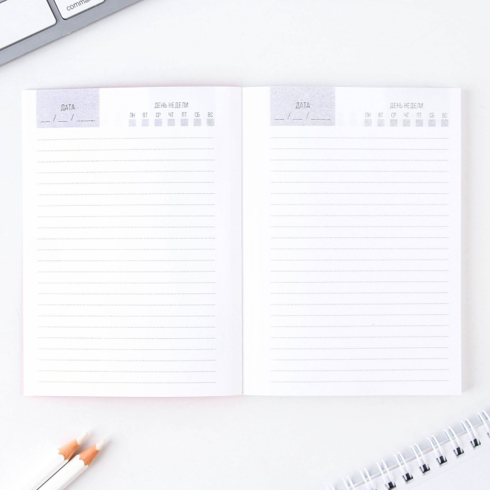 - Ежедневник: компактный и удобный, идеально подойдет для записей, планирования и хранения важных заметок. Его стильный дизайн и качественные материалы делают его отличным аксессуаром, который будет использоваться каждый день.