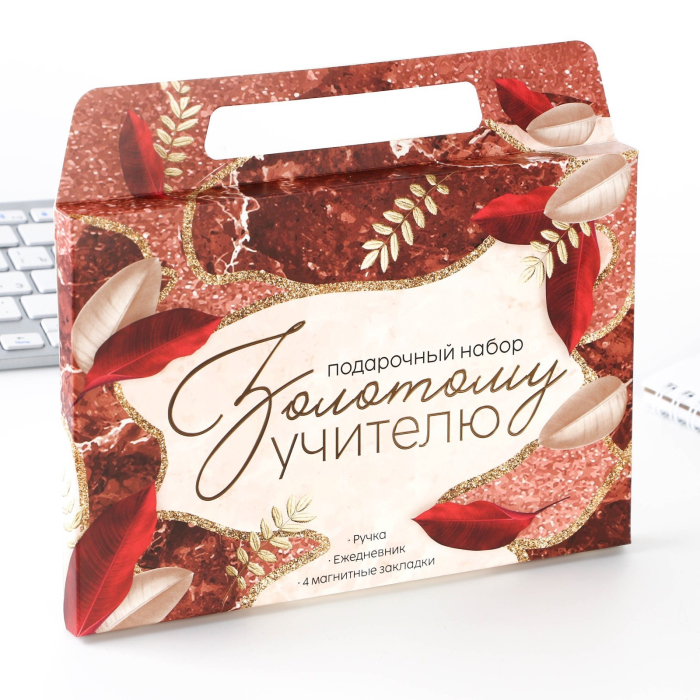 Выразите свою благодарность и уважение к труду вашего учителя с подарочным набором «Золотому учителю» – это не просто подарок, а знак внимания, который будет использоваться на протяжении всего учебного года!