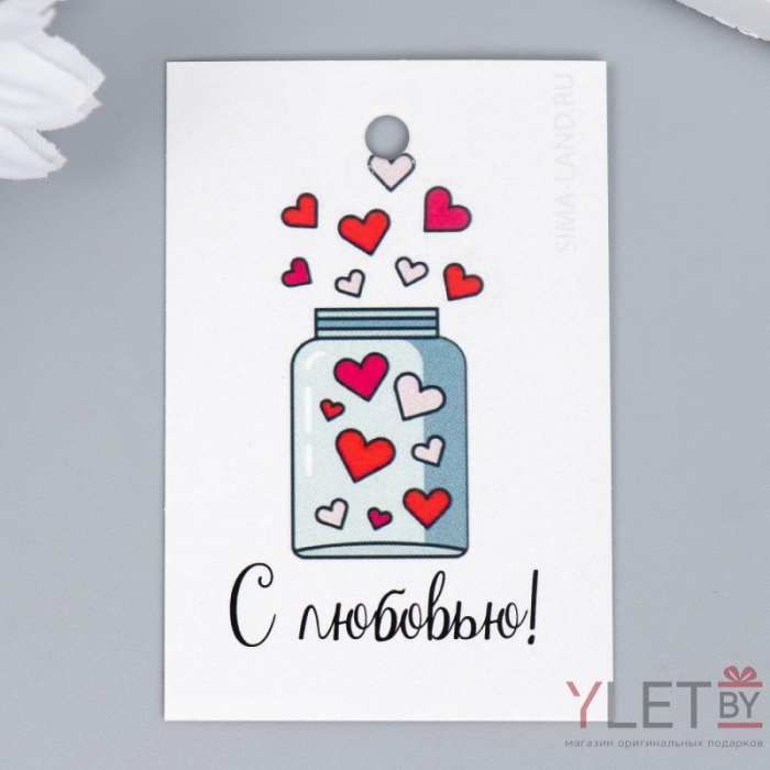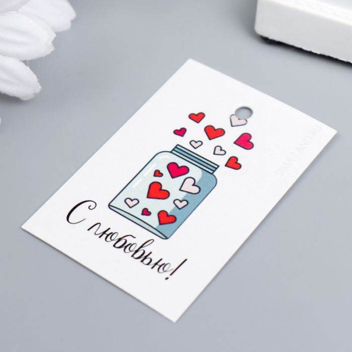 Милая бирка для украшения к подарку или товару, который вы производите или дарите. Бирка «С любовью», станет отличным дополнением к упаковке подарка или заказа. На такой бирке можно оставить свой номер телефона или приятное пожелание человеку, которому Вы будете отправлять подарок или товар. К цветам тоже можно приложить эту маленькую открыточку. Бирка – это всегда знак внимания, который будет приятным для любого человека на любой случай.