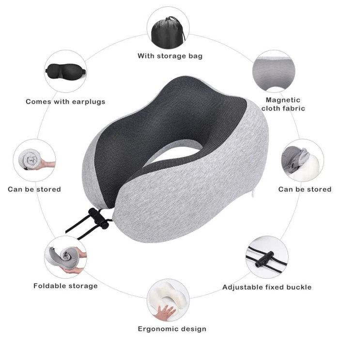 Эта подушка, выполненная в форме воротника, обладает эффектом памяти, что позволяет ей мягко поддерживать вашу голову и предотвращать затекание шеи во время сна. Для дополнительного удобства на модели предусмотрен фиксатор, который обеспечивает надежное удержание подушки на шее, а также возможность регулировки размера для достижения максимального комфорта. Теперь ваш отдых станет еще более незаменимым!