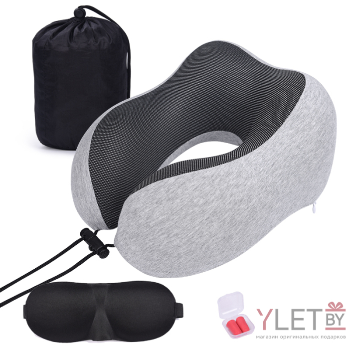 Подушка под голову с эффектом памяти, с чехлом, маской и берушами