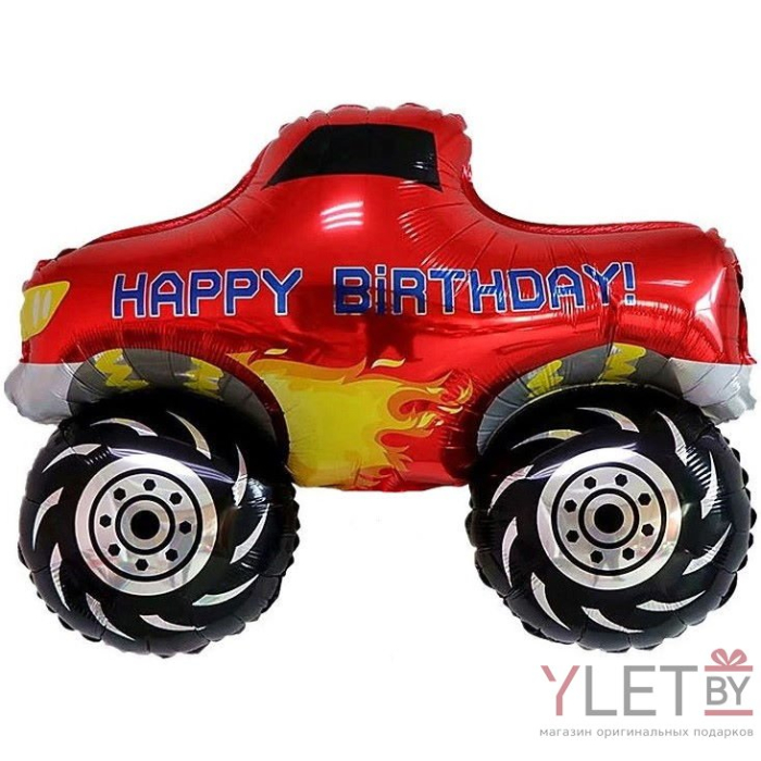 Шар (30''/76 см) Фигура, С Днем Рождения, Пикап Монстр-Трак, Красный
