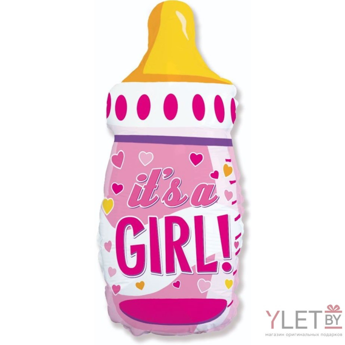 Шар (31''/79 см) Фигура, Бутылочка для девочки (сердечки), Розовый