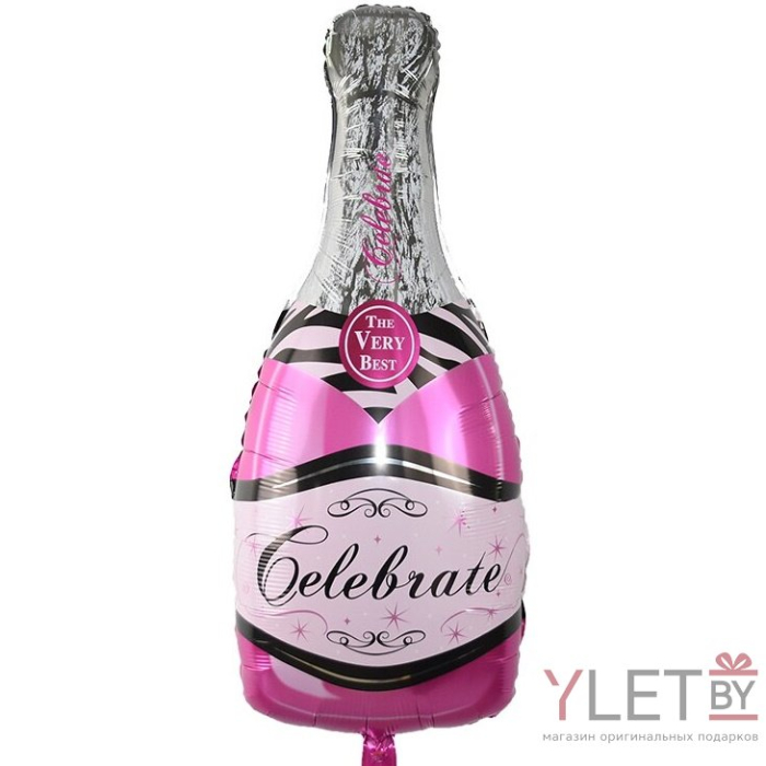 Шар (37"/94 см) Фигура, Бутылка шампанского, Розовый