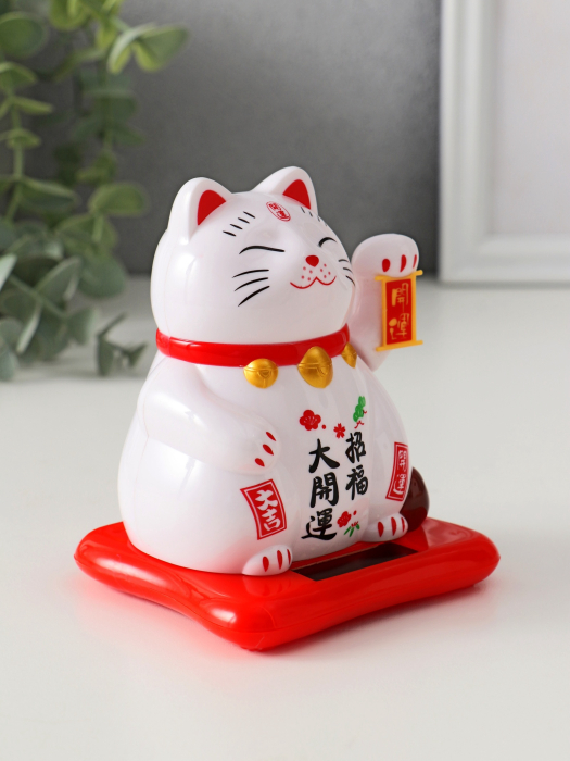 Маятник от солнечной батареи «Кот Манэки-нэко спящий», пластик, белый, 9.5×10×9.5 см