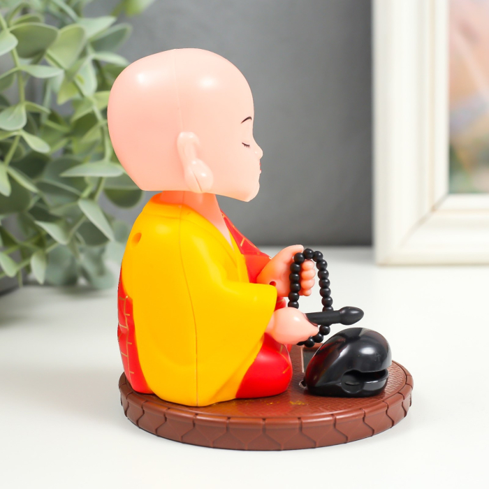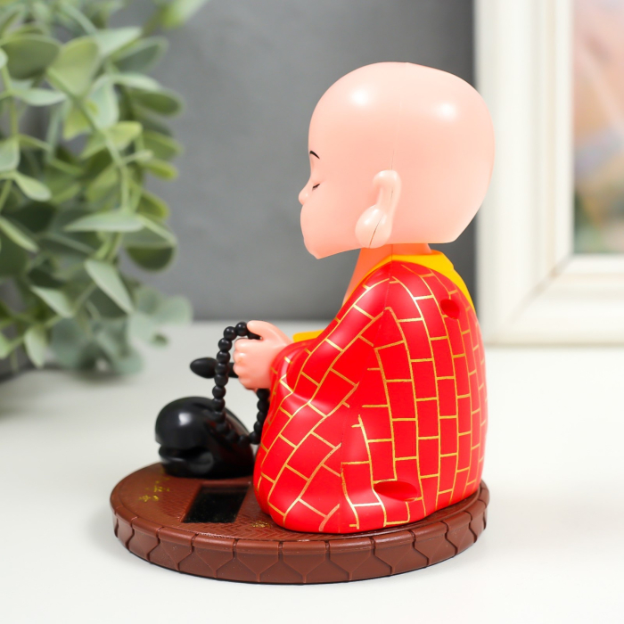 Маятник от солнечной батареи «Маленький будда с чётками», пластик, 11×8.5×8.5 см