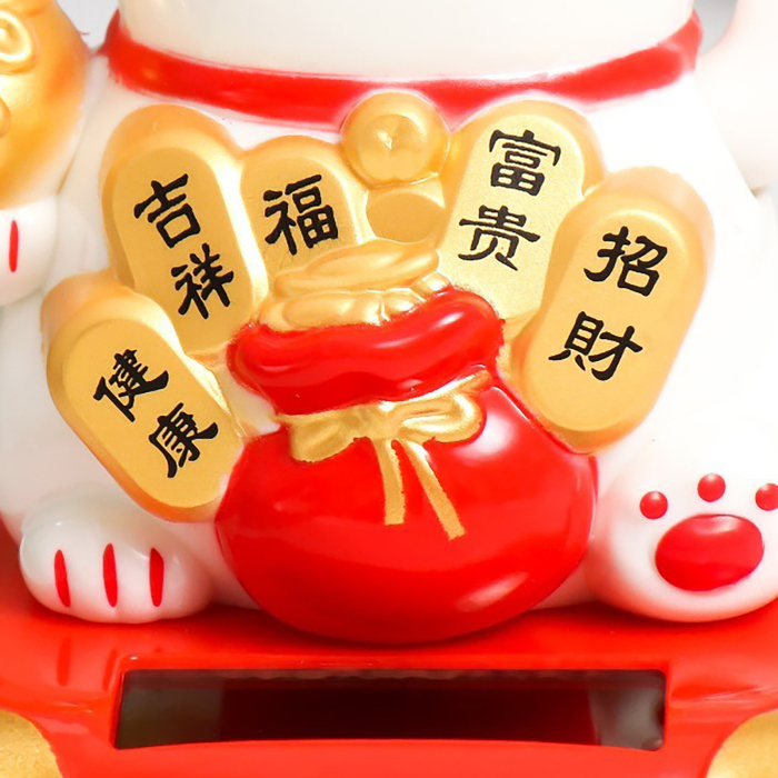 Маятник пластик от солнечной батареи "Белый Манэки-нэко с тыквой горлянкой" 7х7х7,5 см