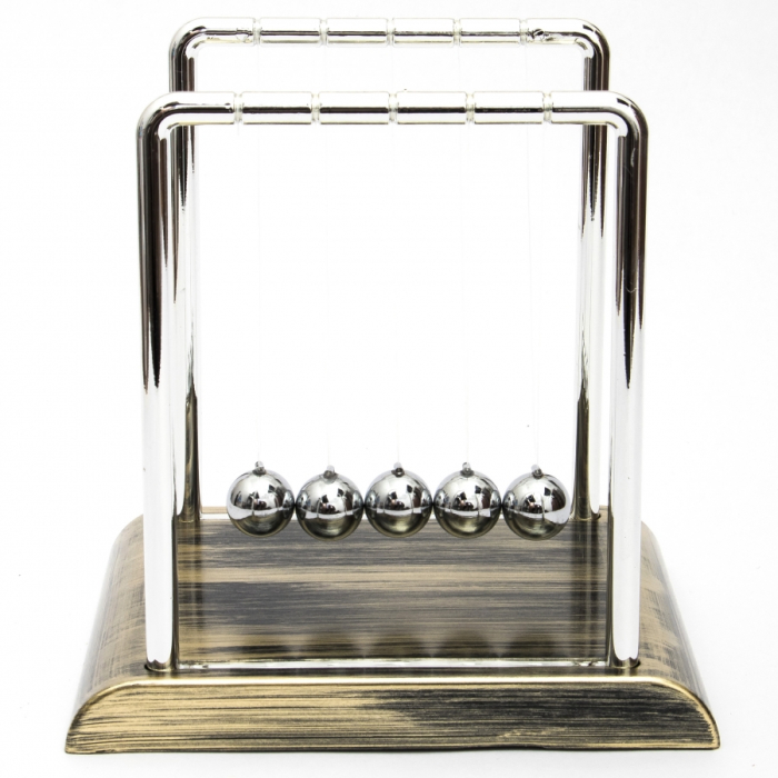 Поразительно просто: достаточно отвести и отпустить один из крайних шариков, чтобы увидеть, как эта кинетическая энергия передается от шару к шару. Завораживающее постукивание блестящих шаров создает успокаивающую звуковую среду, которая поможет вам сосредоточиться на своих мыслях или расслабиться после напряженной работы.