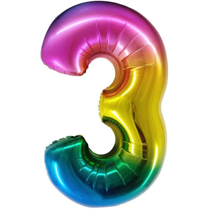Шар (34''/86 см) Цифра, 3, Радужный, Градиент