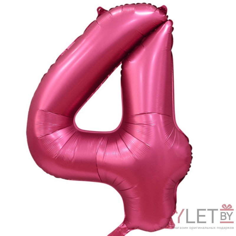 Шар (34''/86 см) Цифра, 4, Бордовый, Сатин