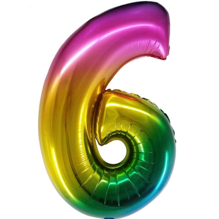 Шар (34''/86 см) Цифра, 6, Радужный, Градиент