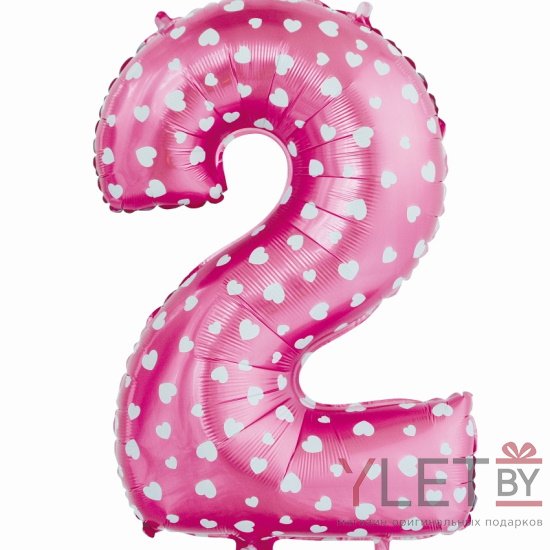 Шар (40″/102 см) Цифра, 2 Сердечки, розовый