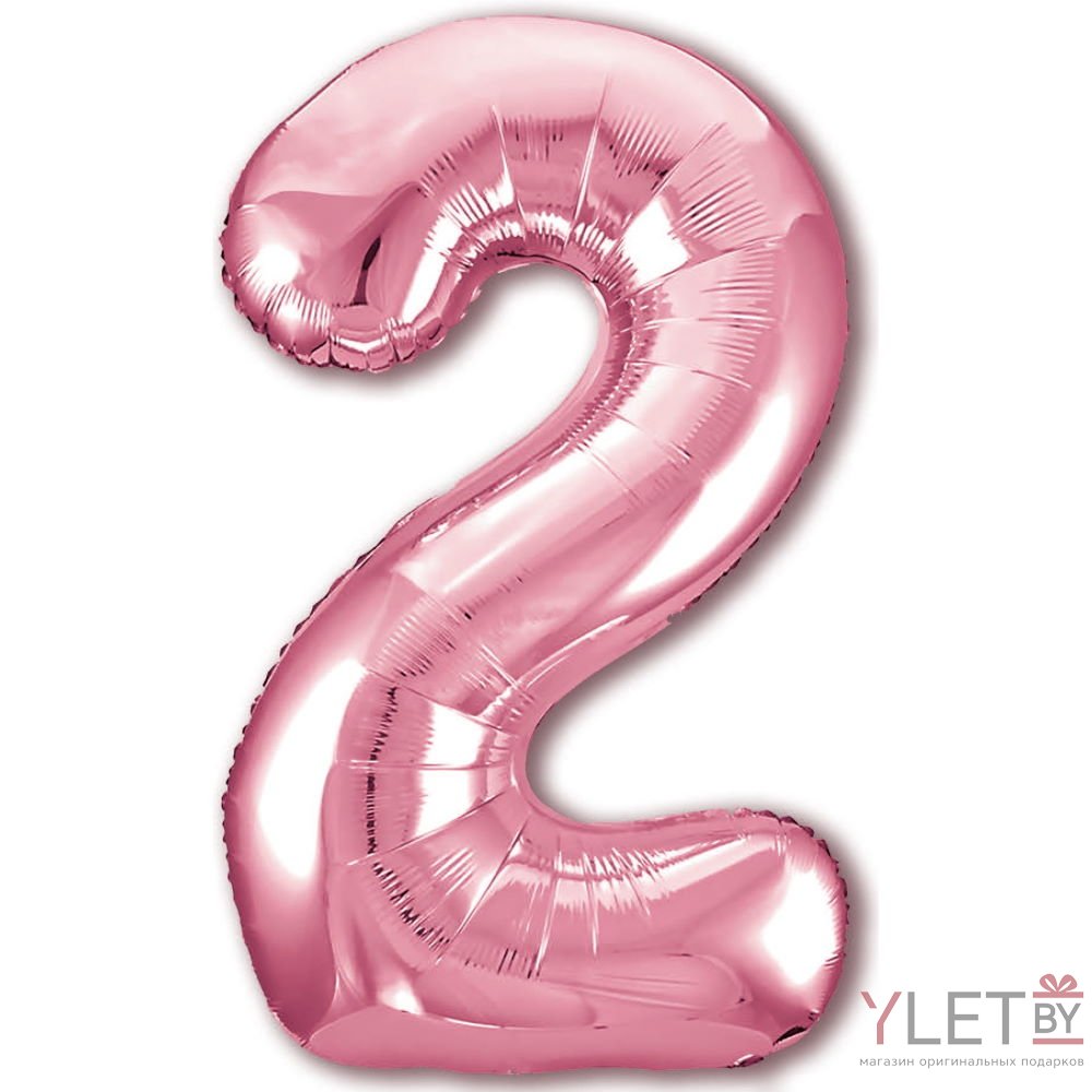 Шар (40''/102 см) Цифра, 2 Slim, Розовый фламинго