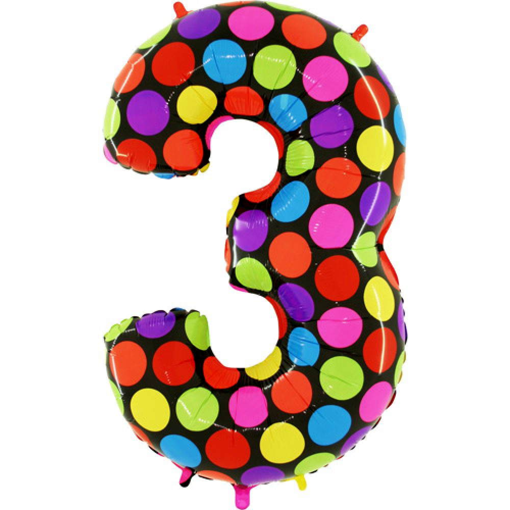 Шар (40"/102 см) Цифра, 3, Супер яркий