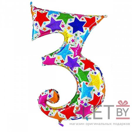 ----Шар (40″/102 см) Цифра, 3 Звезды, дизайнерская