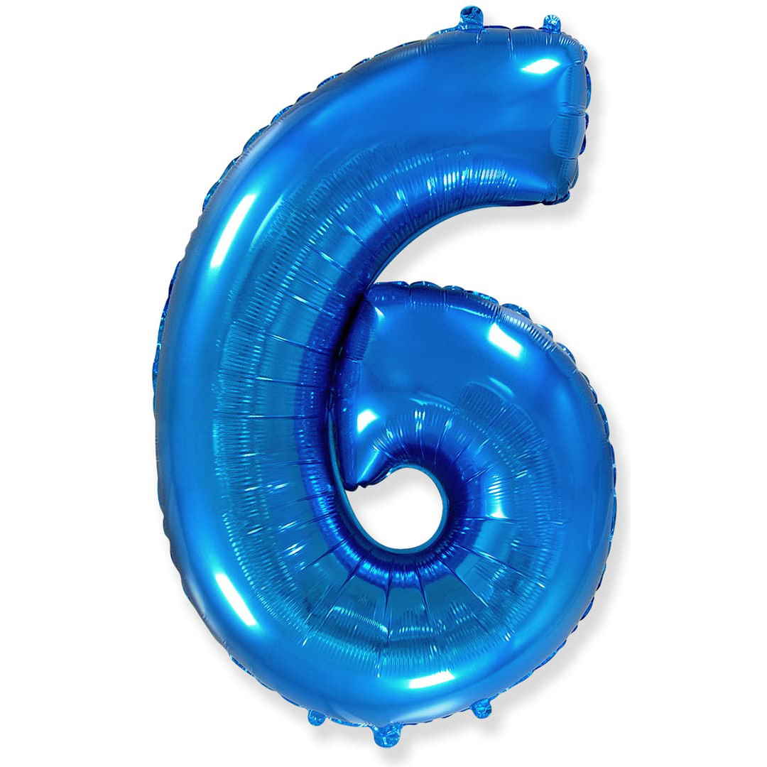Шар (40"/ 102 см) Цифра, 6, Синий