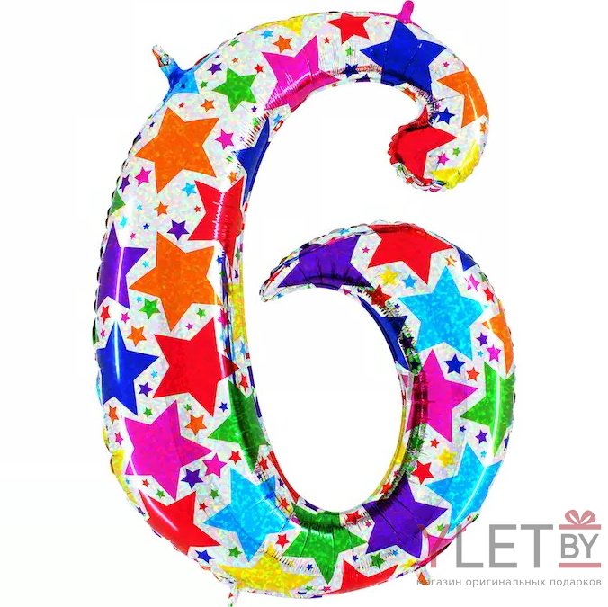 Шар (40″/102 см) Цифра,6 Звезды, дизайнерская