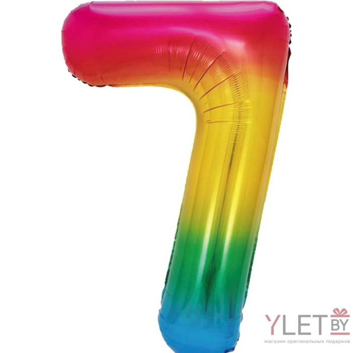 Шар (40''/102 см) Цифра, 7, Радужный, Градиент