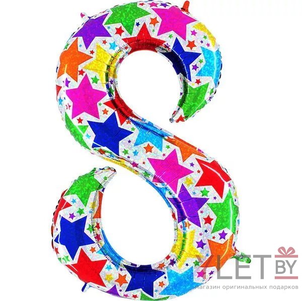 ----Шар (40″/102 см) Цифра, 8 Звезды, дизайнерская