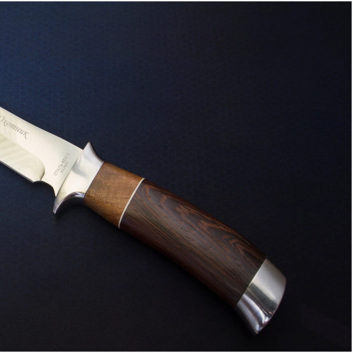 Туристический нож выполнен из нержавеющей стали, которая является отличным выбором для тех, кто ищет надежный и долговечный нож с превосходной антикоррозионной стойкостью. Сталь обладает высокой твердостью, что позволяет клинку длительное время оставаться острым, обеспечивая эффективную резку и точность при выполнении различных задач. Благодаря своим характеристикам клинок легко справляется с различными материалами, будь то пища, веревка или древесина. Деревянная рукоять ножа имеет естественную текстуру, цвет и уникальные узоры, что придает ножу неповторимый и привлекательный внешний вид.