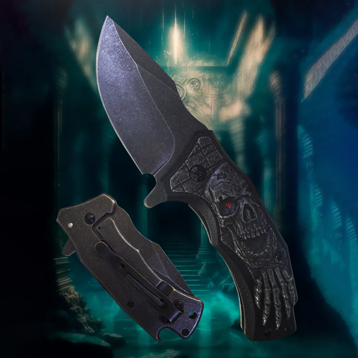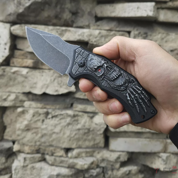 Складной нож "Череп" — это идеальное сочетание стиля и практичности. Дополните свою коллекцию уникальным аксессуаром, который не только привлечет внимание, но и станет надежным помощником в любых ситуациях!