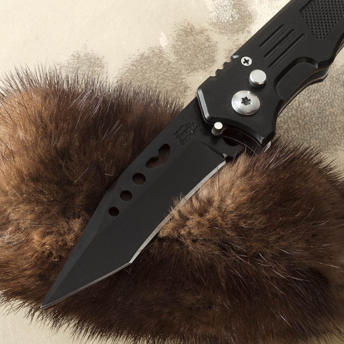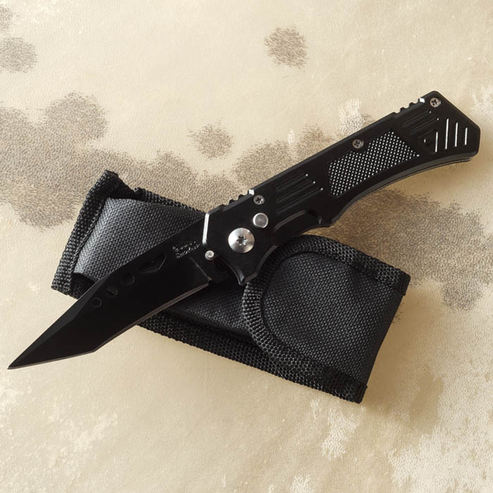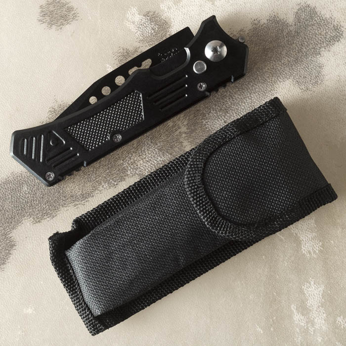 Нож металлический складной Черный с прорезями