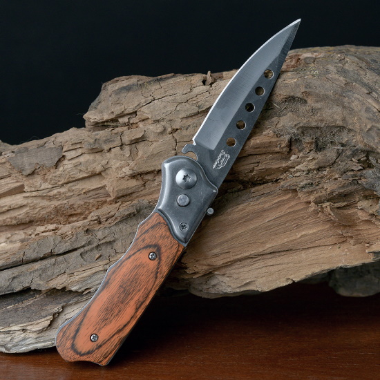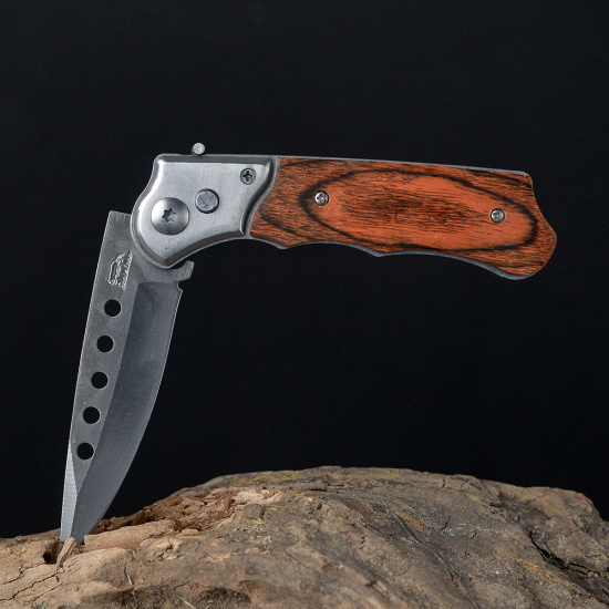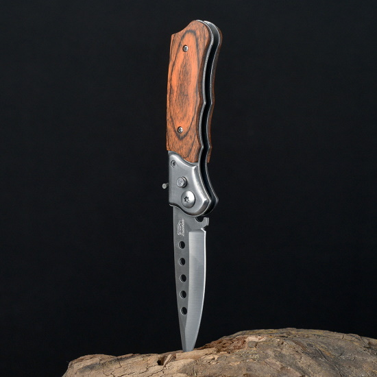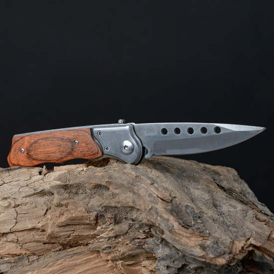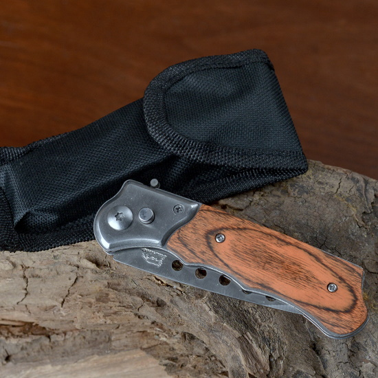 Нож складной в чехле под дерево с круглыми прорезями