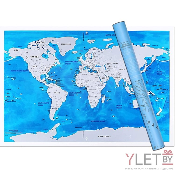 Cкретч карта мира или как ее еще называют cтиральная карта уже успела зарекомендовать себя как наиболее привлекательный подарок для любителей путешествий. И правда здорово вот так просто взглянуть на эту замечательную вещь и наглядно увидеть страны в которых ты уже побывал, а также те, которые еще предстоит покорить. На карте нанесен специальный слой, который легко стирается при помощи обычной монетки (да, да, прямо как на лотерейных билетах). Идея проста: страны, где Вы уже побывали, необходимо стирать на карте по мере их посещения. В результате мы получим вот такую наглядную картину всех Ваших путешествий.