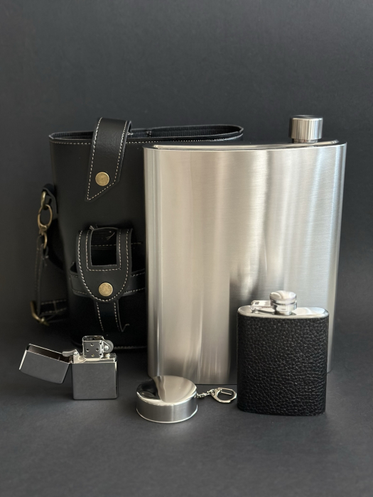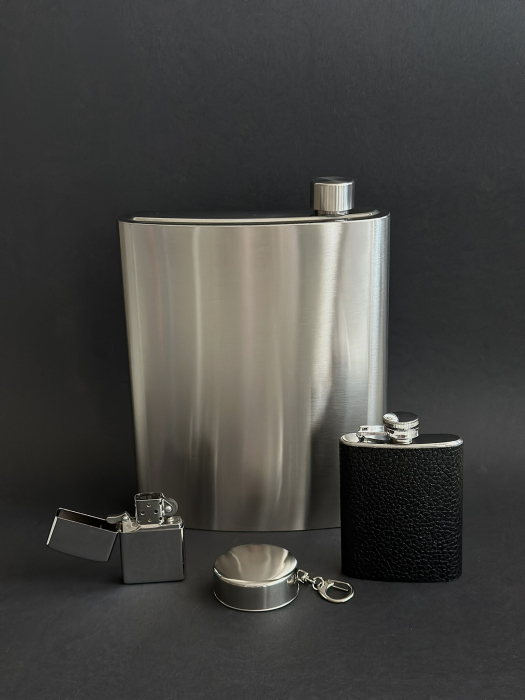 Дополнительно в набор входит фляжка объёмом 120 мл, которая идеально подойдёт для тех, кто хочет взять с собой небольшую порцию крепкого напитка для поднятия настроения или в качестве подарка другу. Теперь у вас всегда будет возможность насладиться моментом за дружеским тостом!
