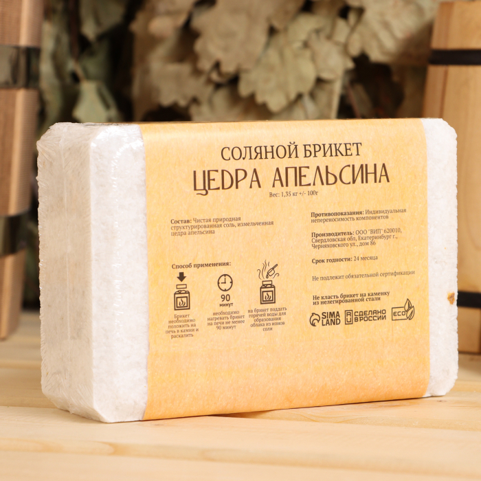 Соляной брикет "Цедра апельсина", 1,35 кг — это изысканный продукт, способный сделать ваше пребывание в бане не только приятным, но и максимально полезным для здоровья. Этот брикет с ароматом свежих цитрусовых не только поднимает настроение, но и способствует улучшению состояния организма.