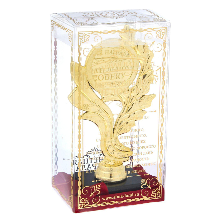 С размерами 17,5 х 9 х 6,3 см, кубок не только эффектно смотрится, но и даёт возможность выразить вашу благодарность и уважение. Нежные лавровые ветки, украшенные на кубке, олицетворяют величие и тепло ваших чувств, придавая подарку особую значимость.