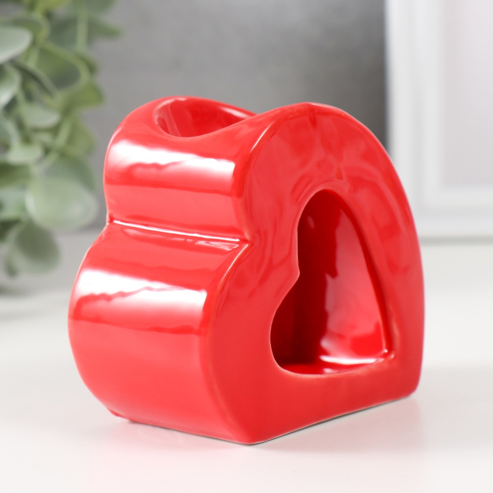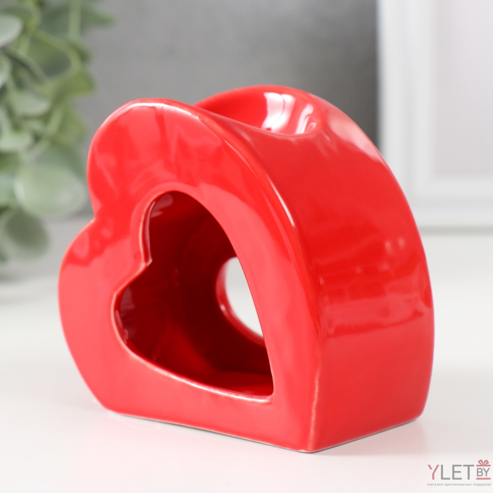 Аромалампа керамика "Сердце" красная 9х4,8х8 см