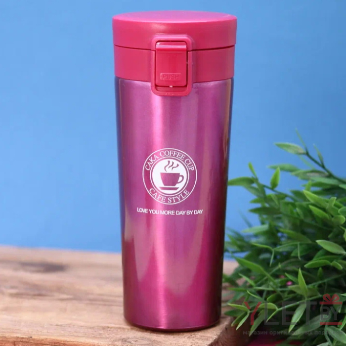 Кружка термос: внутренняя часть изготовлена из металла, который надолго сохраняет температуру напитка, а крышка - из качественного пищевого пластика. Термокружка автомобильная - подходит для стандартного подстаканника. Термокружка герметична, а закрывающий элемент на крышке обеспечивает безопасность, защищая от случайного открытия в сумке. Термос кружка подходит для холодных и горячих напитков. Можно мыть в посудомоечной машине при небольшом температурном режиме. Термокружка походная: сохраняет тепло до 4 часов, холод - до 12 часов. Кружка пригодится в дороге, в офисе и на прогулке. Термокружка для автомобиля отличный подарок девушке! На дне, кружка термос имеет специальную прорезиненную основу предотвращающую царапины на поверхностях. Так же для защиты от непроизвольного нажатия кнопки, термостакан имеет специальный защитный замок-предохранитель.