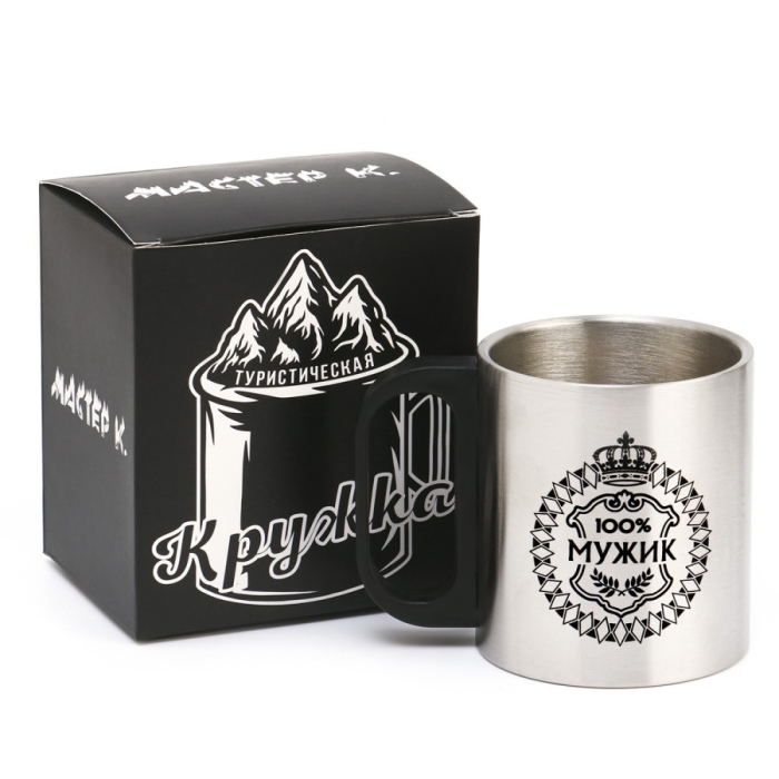 Стильная и яркая Термокружка Туризм 100% мужик, 180 мл для кофе и чая, подарит вам тепло и уют. Двуслойная конструкция кружки из нержавеющего металла снаружи и 304 нержавеющей стали внутри. Внутренняя колба из нержавеющей стали не впитывает запахи, не влияет на вкус напитка и легко моется.