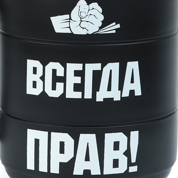 Термокружка « Всегда прав» — это стильное и практичное решение, которое станет незаменимым атрибутом для любителей горячих и прохладительных напитков. Изготовленная из высокопрочной нержавеющей стали, она сохраняет температуру ваших любимых напитков до 2 часов, обеспечивая наслаждение от каждого глотка.
