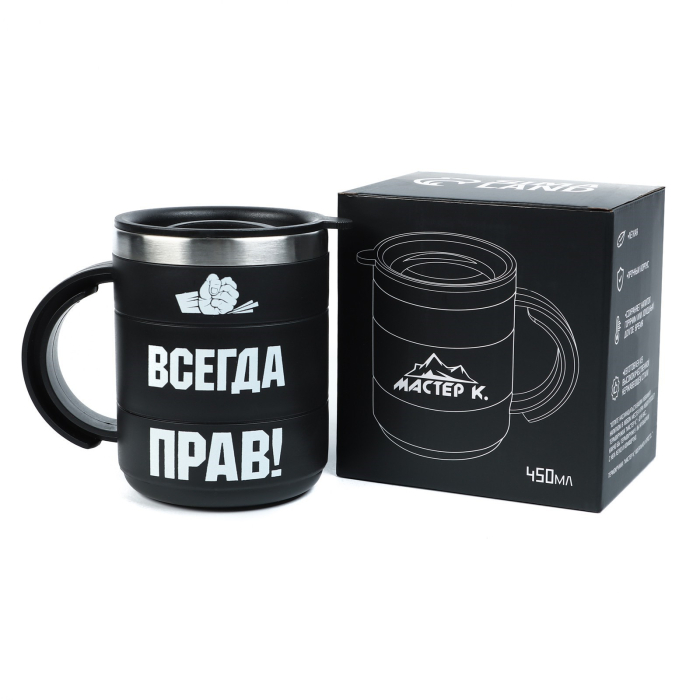 Термокружка « Всегда прав», 450 мл, с ручкой, сохраняет тепло 2 ч, 12.5×10.5 см