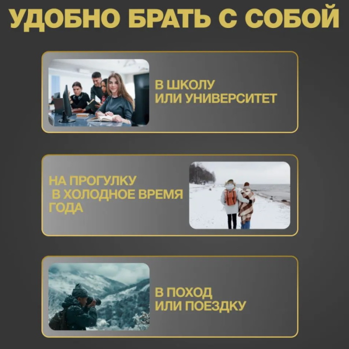 Не упустите возможность стать обладателем этого многофункционального термоса, который поможет сохранить идеальную температуру ваших любимых напитков и станет ярким аксессуаром в вашей жизни. -