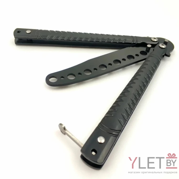 Нож бабочка тренировочный черный Засечки