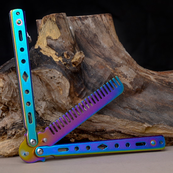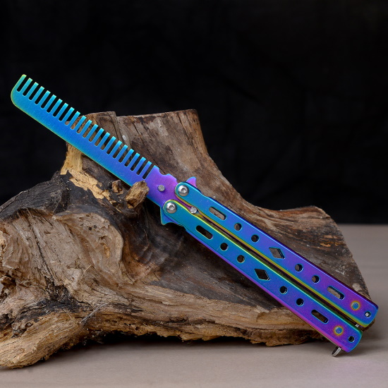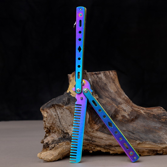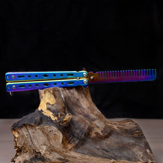 Расчёска бабочка это необычного вида нож, где вместо лезвия у него расческа. Отлично подойдет для тех, кто решил заняться флиппингом (необычные трюки с бабочкой), но не уверен или боится случайно порезаться в процессе обучения. Нож бабочка расческа - идеальное оружие в руках стилиста. Надежный инструмент, жесткая, металлическая.